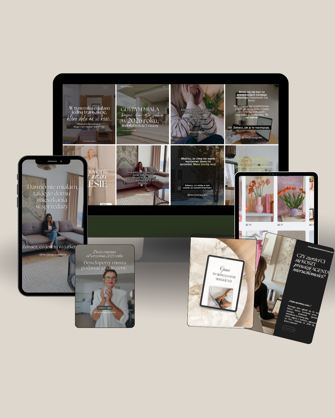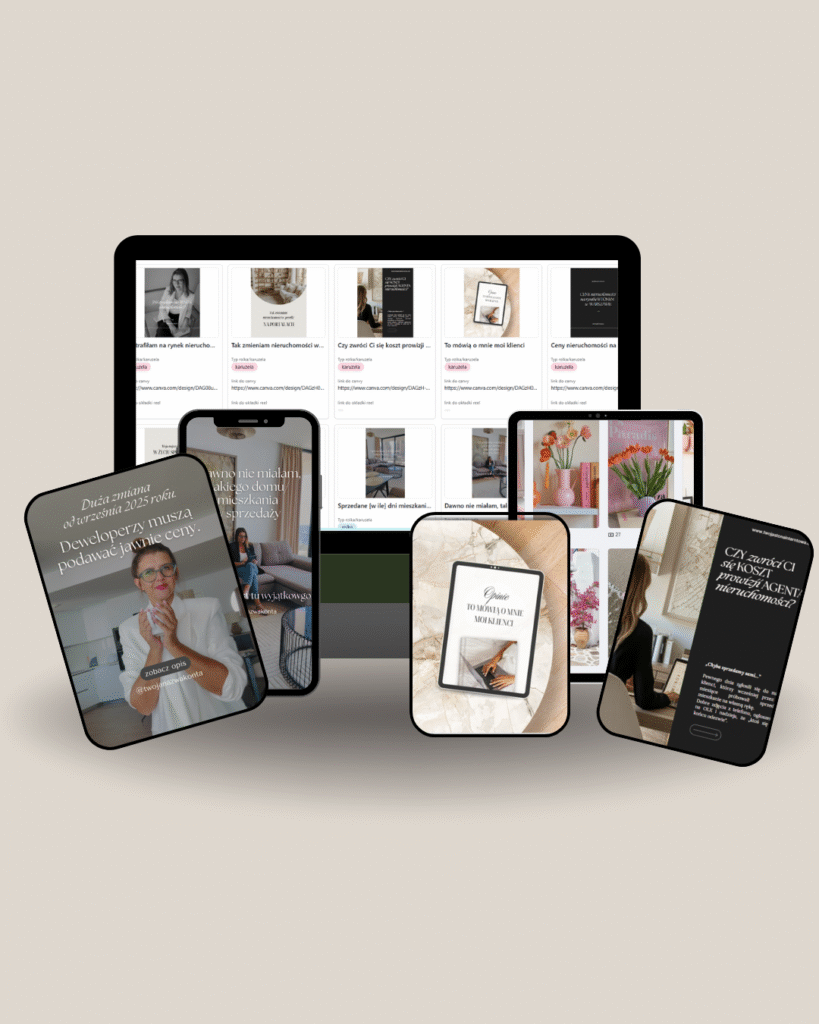Stworzyłam kalendarz comiesięcznych treści dla agentek nieruchomości. Gotowe szablony postów i rolek oraz wiele materiałów marketingowych i moich treningów, które wzniosą